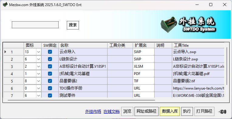 基本说明:外挂系统,等于一个数据管理表,外挂菜单,是绑定于SW主界面的菜单。
