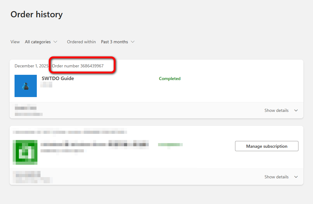 ContentYour order number and purchase date