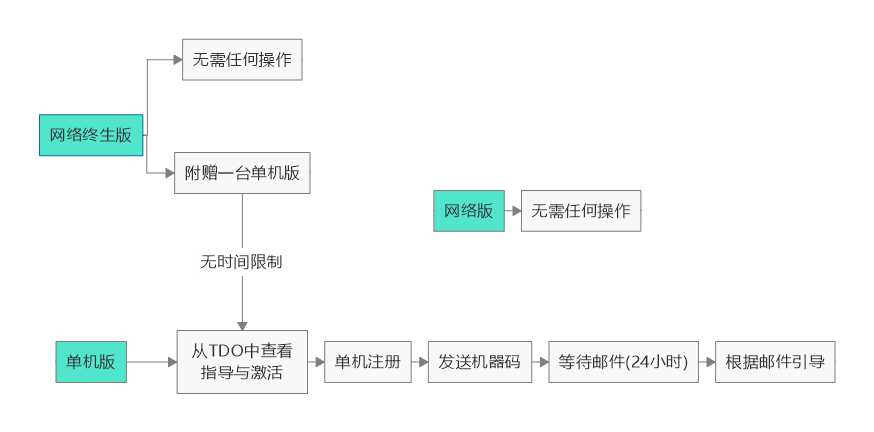 - 我们根据用户提供的机器码,发送选购模块的单机激活码